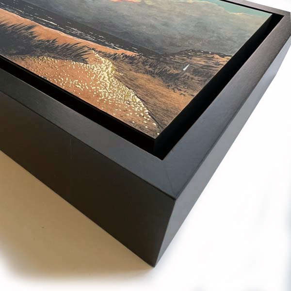 - Framed mounted print — ready for hanging in a beautiful ebony black open back “floater” frame with a 2 inch deep profile. Frame measures 6 3/8 inches wide x 8 3/8 inches tall.